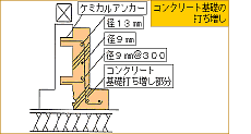 また、基礎にひび割れなどを見つけたら基礎部の打ち増しなどの補強をします。